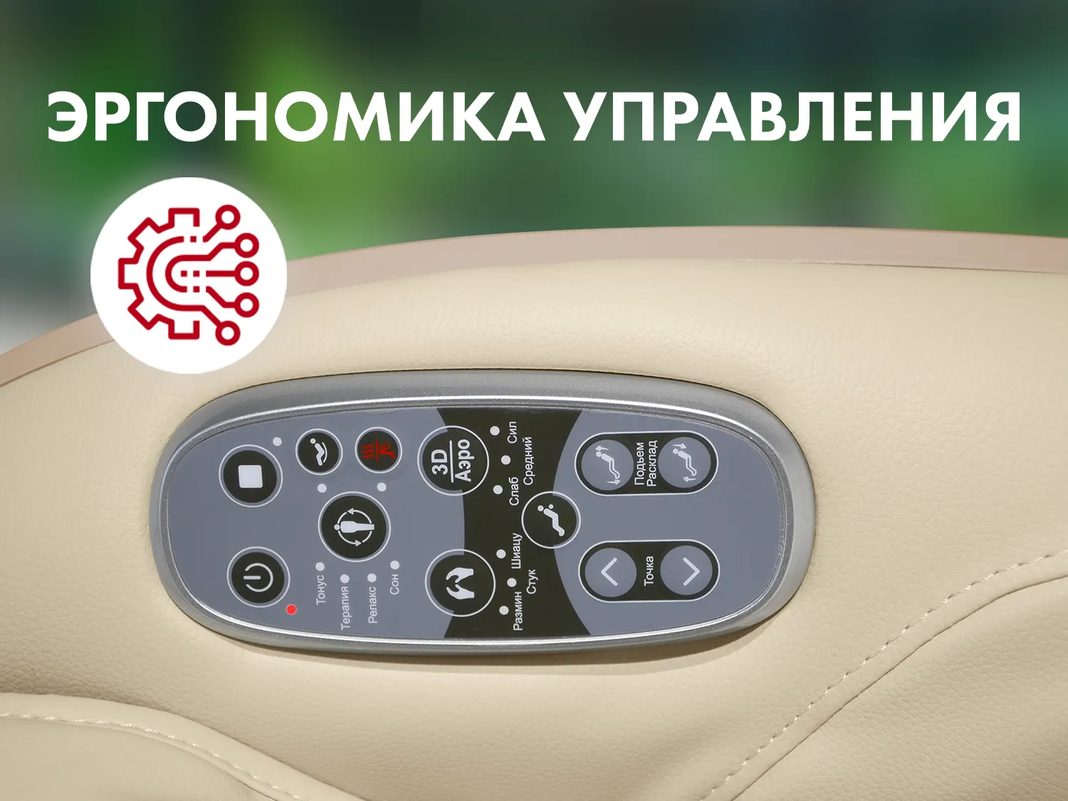 Функция плавного раскачивания создает ощущение невесомости, помогая полностью расслабиться и погрузиться в состояние глубокого отдыха во время сеанса массажа.